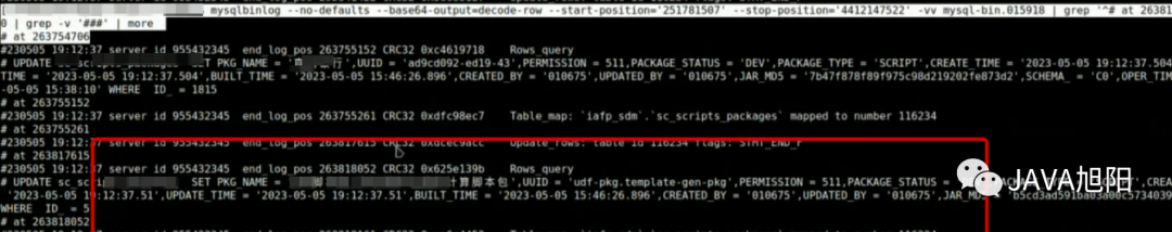 根据pos, 我们看下究竟是什么SQL导致的 复制./mysqlbinlog --no-defaults --base64-output=decode-rows --start-positinotallow=xxxx --stop-positinotallow=xxxxx -vv /mysqldata/mysql/binlog/mysql-bin.004816|grep ^# atxxxx -C5| grep -v ### | more1.