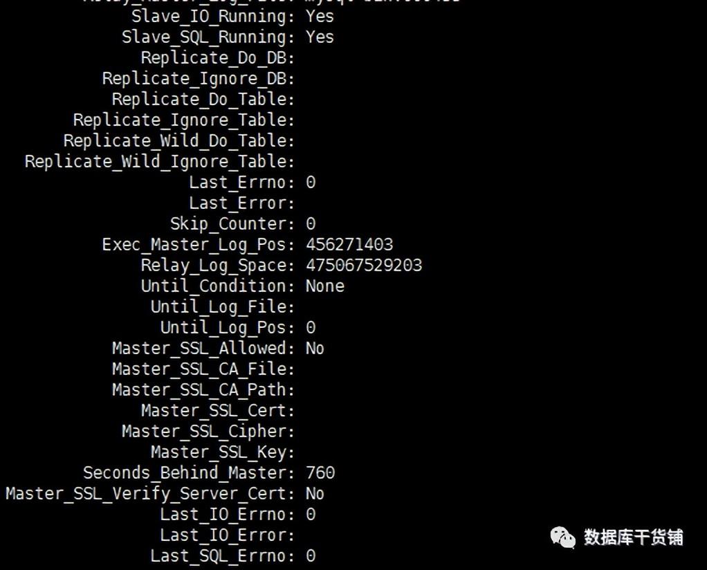 复制mysql> stop slave;Query OK, 0 rows affected (0.01 sec)mysql> set global slave_pending_jobs_size_max=157286400;Query OK, 0 rows affected (0.00 sec)mysql> start slave;Query OK, 0 rows affected (0.05 sec)1.2.3.4.5.6. (3)处理完毕检查一下主从同步情况 复制mysql> show slave status\G1.