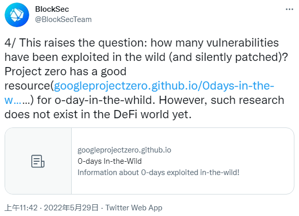 BlockSec 指出:与 ETH 和兼容区块链相比,在 Terra 上扫描相关问题的人较少,因而该漏洞才迟迟未被公众所知晓。