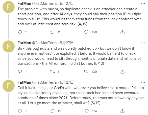 然而由于代码上的 Bug,报道称 Mirror 的锁定合约、未能检查何时有人多次使用同一个 ID 来提取资金。