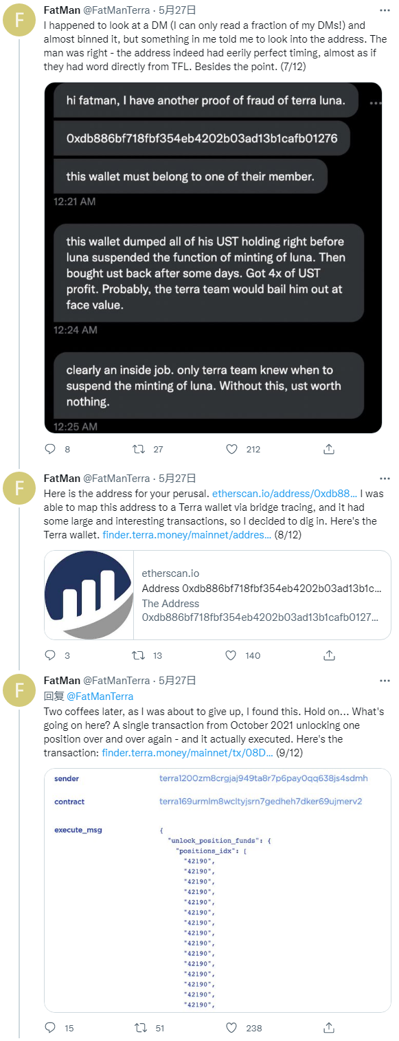 本文提到的漏洞,由 Terra 社区成员兼分析师“FatMan”曝光。这对最新推出的 Terra 2.0 区块链,他也是最直言不讳的反对者之一。