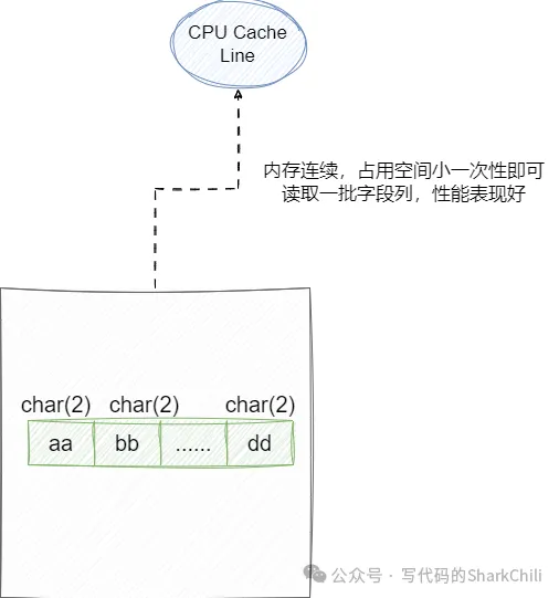 而char则时定长的空间,如果字符长度不足则用结束符标记字符串结束,对于字符串较短或者长度几乎相同、修改较少的场景,使用char性能表现会比前者更出色一些,因为char长度固定,碎片较少,可以很少的利用局部性原理IO大量数据。