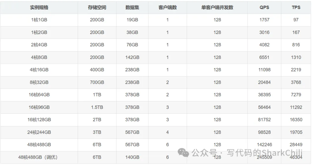 支持水平拓展,Tidb可以通过增加节点实现扩展,支持大规模数据存储和高并发访问。数据库会自行完成分片并存储在不同节点上,避免我们业务逻辑上的分表的实现的复杂度。TiDB支持ACID事务,确保数据一致性和完整性。它通过raft保证高可用和一致性。支持大多数MySQL的SQL语法。使用MySQL主从架构时,需要注意那些问题在进行分库分表时,我们必须结合硬件条件对应的MySQL压测结果针对业务需求评估资源,例如我们的业务需求要求QPS是10w,对应的数据库给定的服务器配置是4C8G,按照下图给出的压测报告,我们至少是需要30台(15台master和15台slave)数据库服务器保证高并发和高可用:
