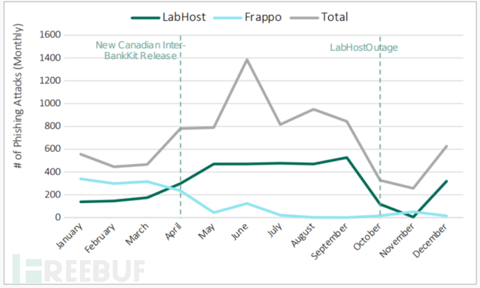 LabHost 并不是借助加拿一家新的提供商,但在 2023 年上半年为加拿大银行推出定制网络钓鱼工具包后,台对其受欢迎程度急剧上升。大银钓鱼
