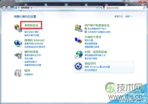 2、在“控制面板”页面下,找到“系统和安全”项,点击进入。