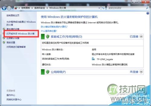4、在左侧页面可以看到“打开或关闭Windows防火墙”,如下图所示,点击进入。