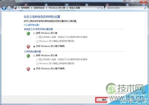 6、以上配置好后,点“确定”即可关闭防火墙。