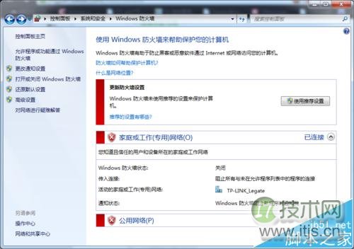 7、防火墙关闭后的页面如下图所示。假如需要重新开启,选择左侧的“打开或关闭Windows防火墙”项设置一下即可。高防服务器