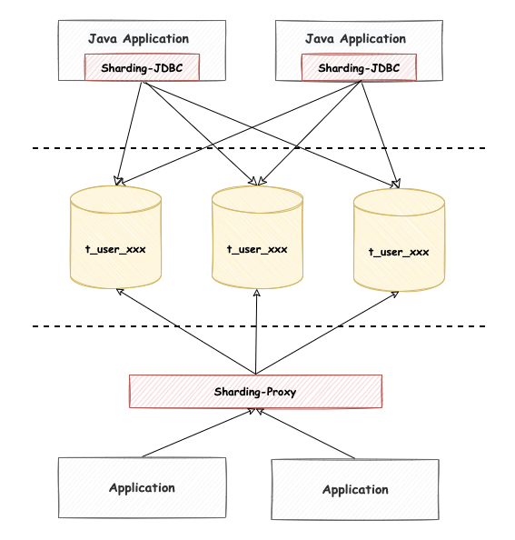 ShardingSphere-JDBC 是一个 Jar 包,底层通过重写 JDBC 组件完成 SQL 解析、路由、改写、执行等流程;需要在项目中添加对应功能的配置文件,对应用有一定侵入性;ShardingSphere-Proxy 是一个进程服务,大部分情况下定位为辅助开发运维的效率工具。它将自己伪装为数据库,应用对接后对代码是无侵入的;对 SQL 的执行逻辑同 ShardingSphere-JDBC 一致,两者复用同一内核。ShardingSphere-Proxy 既然对应用无侵入,而且两者复用同一内核,那为什么大家还要用 ShardingSphere-JDBC 呢?