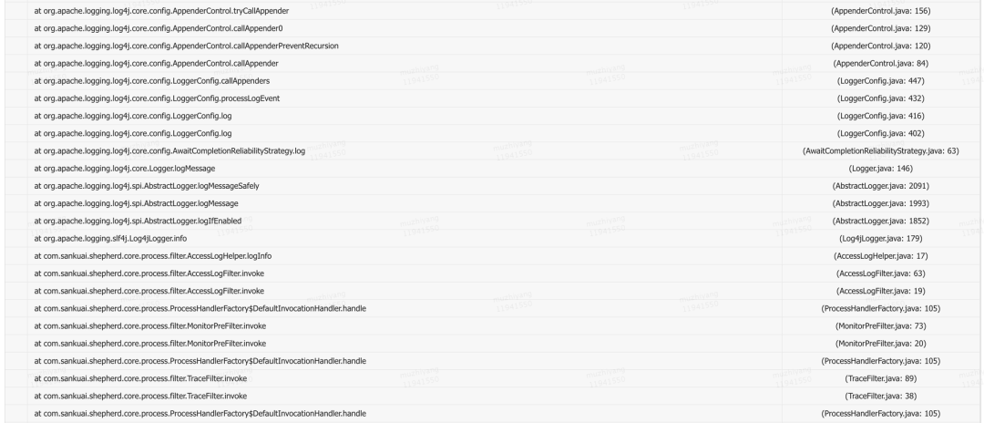 }日志框架对异常进行格式化转换时,有如下两个配置项可参考,默认配置是%xEx。1. %ex,仅输出异常信息,不获取扩展信息(JAR文件名称和版本信息)对应的格式转化类是ThrowablePatternConverter,在format方法内部并没有获取ThrowableProxy对象,所以不会触发解析、加载异常堆栈类。