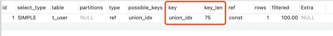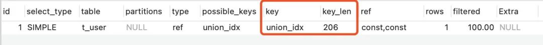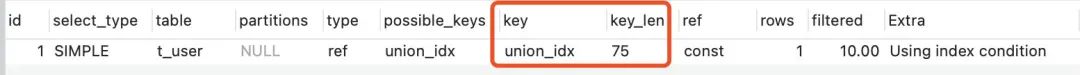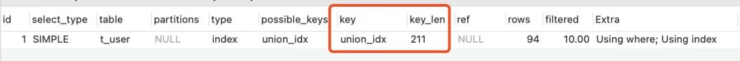 通过explain执行结果可以看出,服务器托管上述SQL语句走了union_idx这条索引。