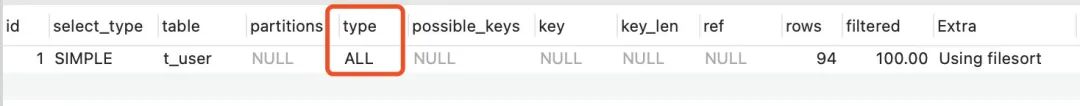 复制explain select * from t_user order by id_no ;1.explain结果: